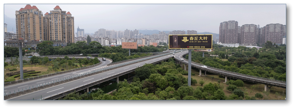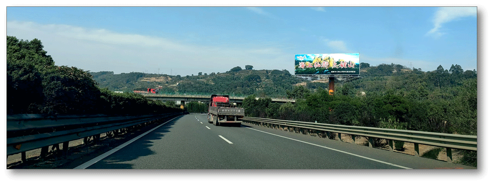 地处福鼎互通中央绿化带,无任何视觉遮挡,独立醒目,主线及收费站出入多方向视觉效果,可视有效距离有效500米。