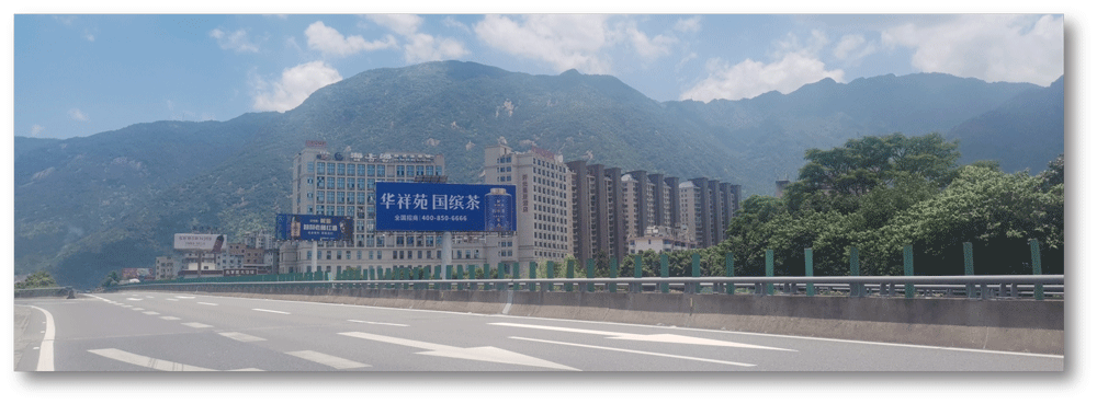 地处太姥山互通中央绿化带,无任何视觉遮挡,独立醒目,主线及收费站出入多方向视觉效果,可视有效距离有效500米。
