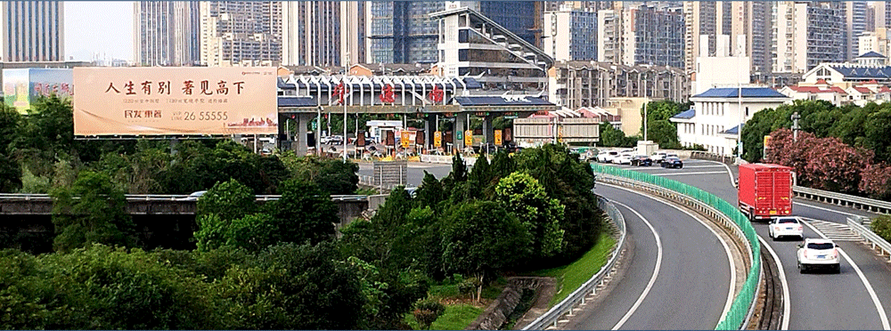 地处宁德南收费站旁绿化带,无任何视觉遮挡,独立醒目,主线及收费站出入多方向视觉效果,可视有效距离超过500米。