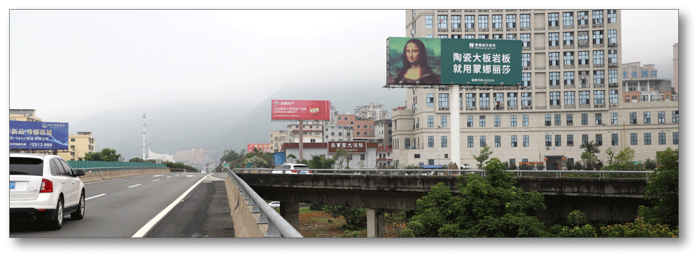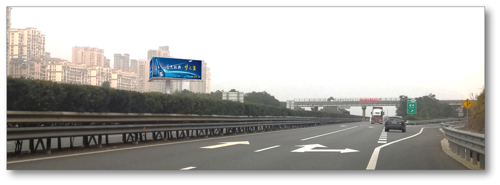 地处宁德南互通中央绿化带,无任何视觉遮挡,独立醒目,主线及收费站出入多方向视觉效果,可视有效距离超过500米。