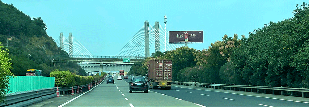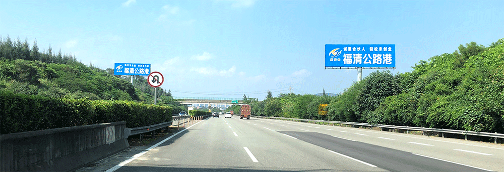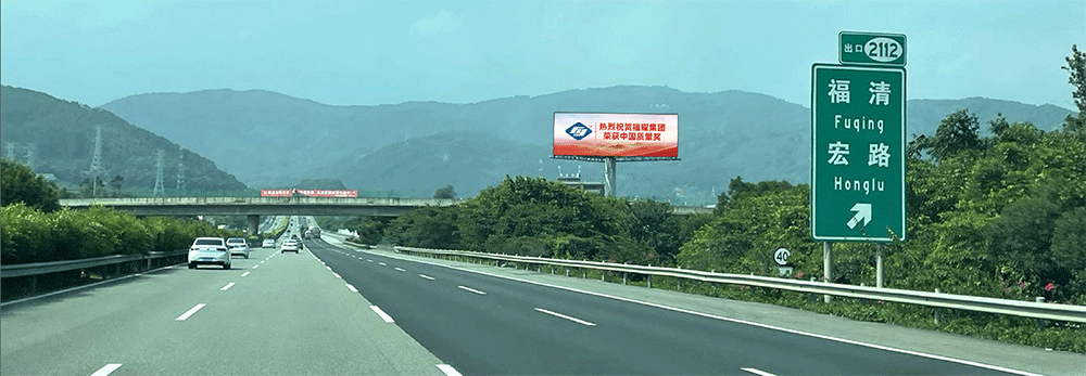 地处福清宏路互通绿化带,无任何视觉遮挡,独立醒目,主线及收费站出入多方向视觉效果,可视有效距离超过1000米。