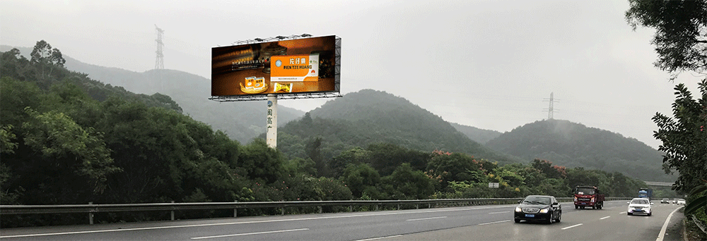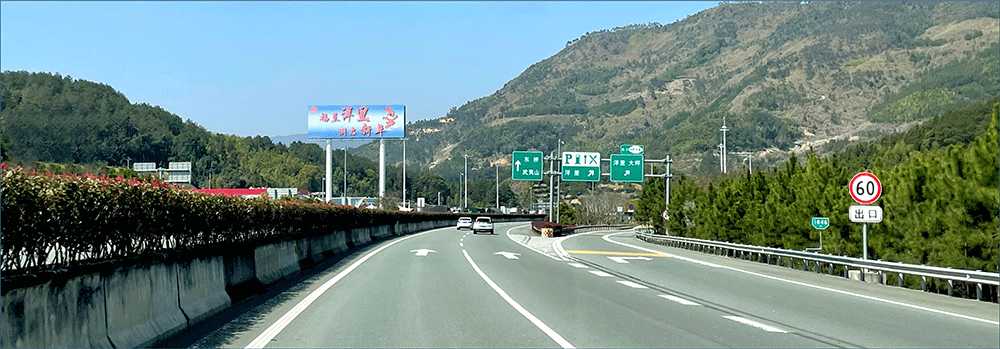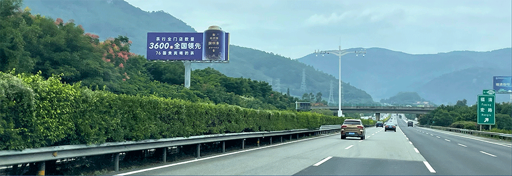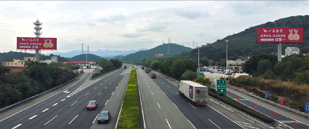 地处福清至大往服务区路段,无任何视觉遮挡,独立醒目,主线及服务区出入多方向视觉效果,可视有效距离超过1000米。