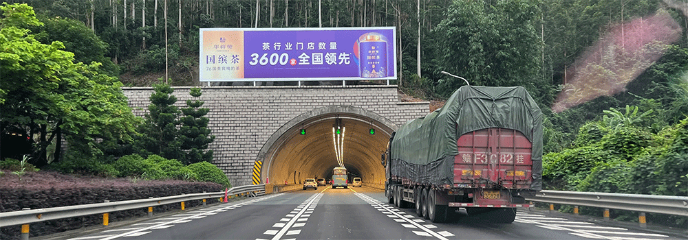 广告牌位于福建省福州区域G15沈海高速福州至泉州路段祥谦连接线四峰隧道顶(出福州A侧);