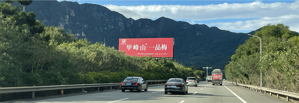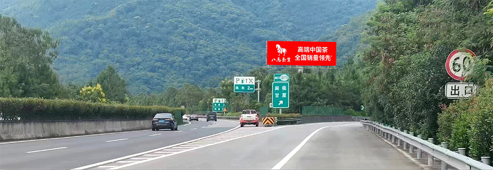 地处福州至南平路段甘蔗互通,无任何视觉遮挡,独立醒目,主线、服务区、收费站出入多方向视觉效果,可视有效距离超过1000米。