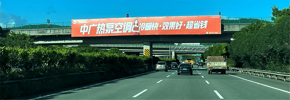 广告牌位于福建省福州区域G15沈海高速福州福清至大往服务区中段B道天桥;