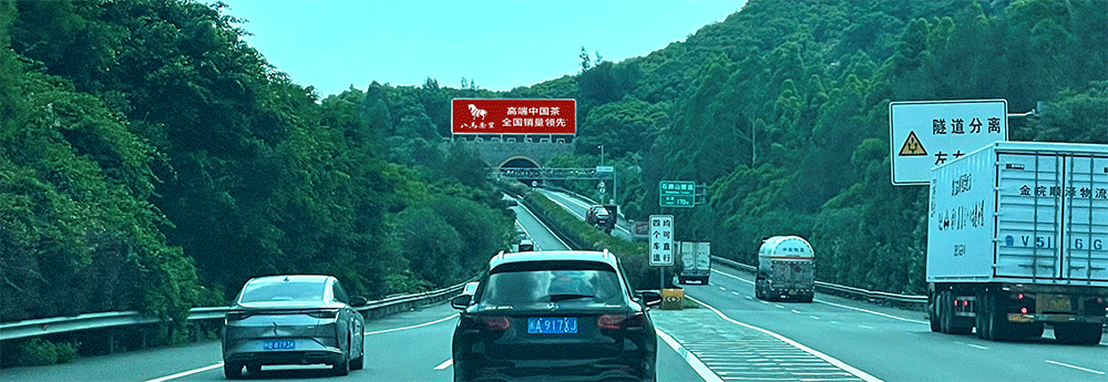 地处福州祥谦连接线四峰隧道顶出福州A侧,无任何视觉遮挡,独立醒目,主线及收费站出入多方向视觉效果,可视有效距离超过1000米。
