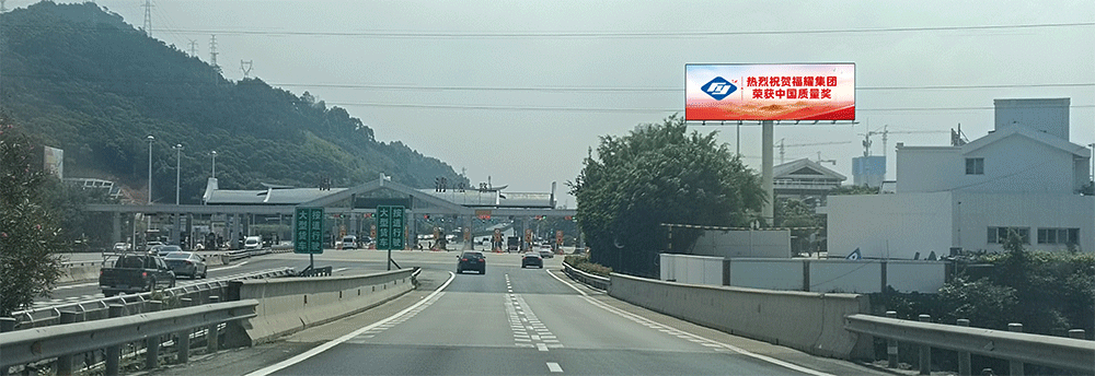 地处福清宏路收费站出站侧,无任何视觉遮挡,独立醒目,收费站出入视觉效果极佳,可视有效距离超过500米。