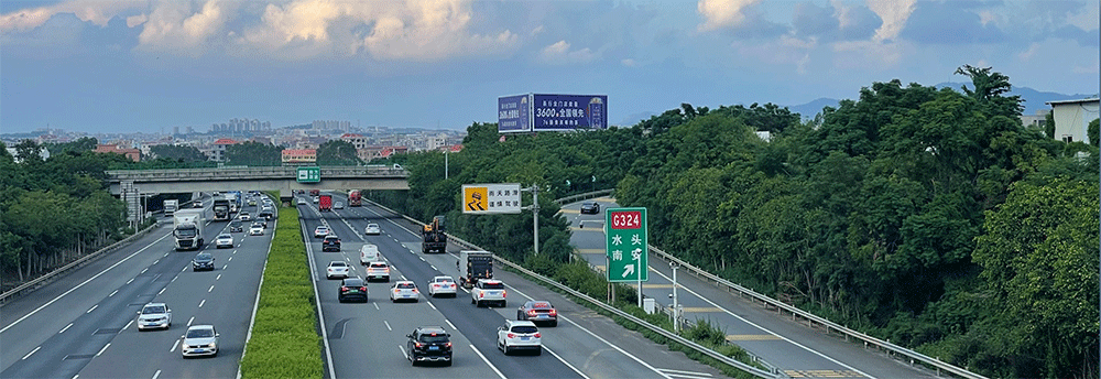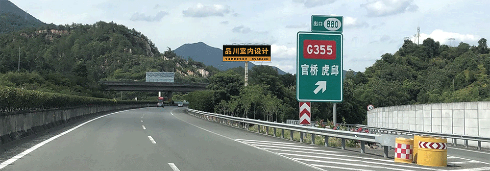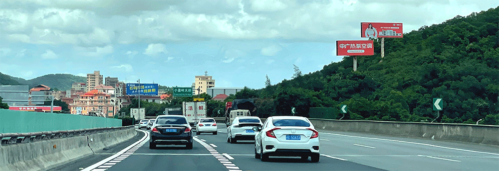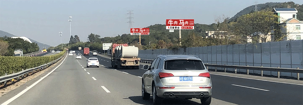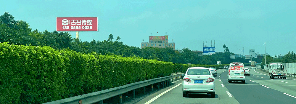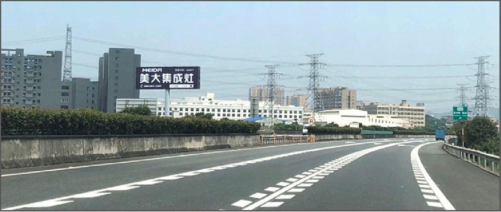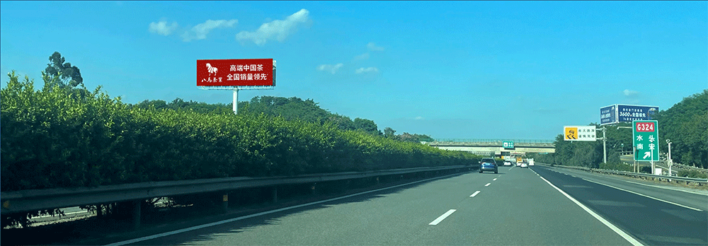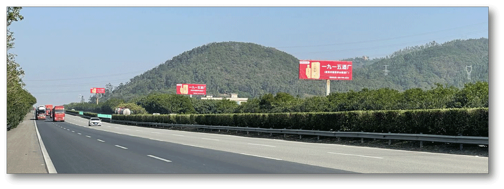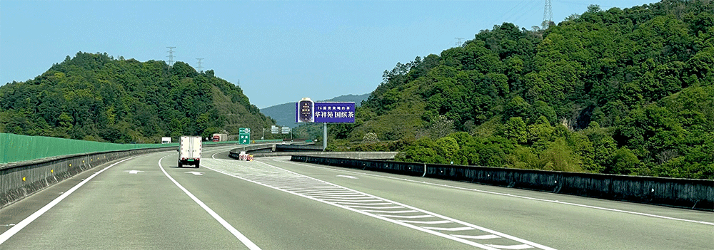 地处南安水头互通绿化带,无任何视觉遮挡,独立醒目,主线及收费站出入多方向视觉效果,可视有效距离超过500米。