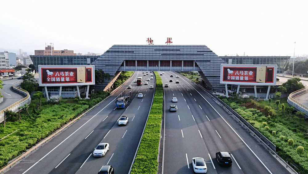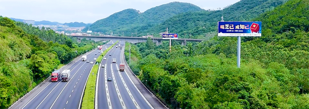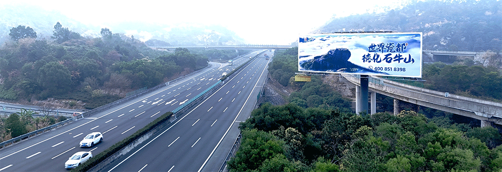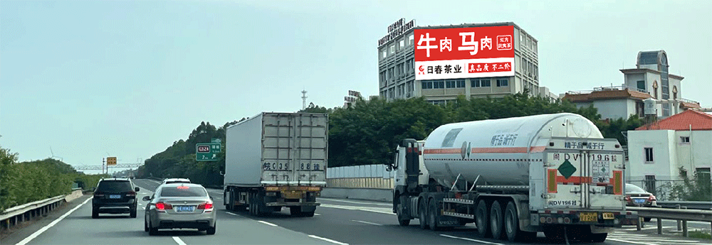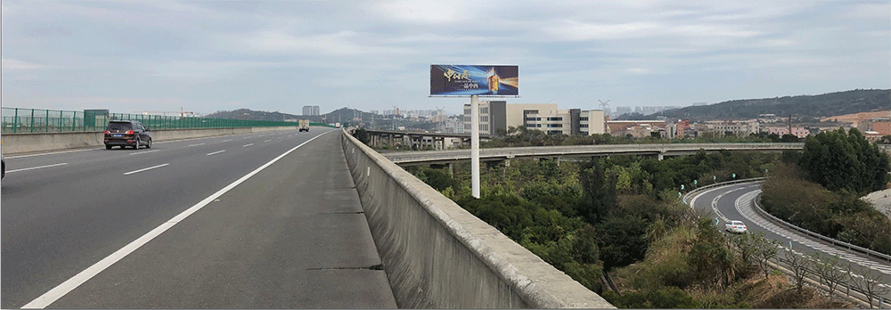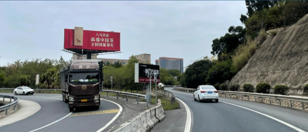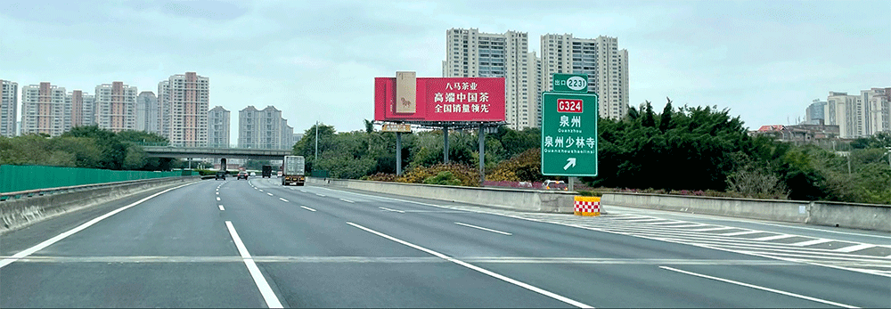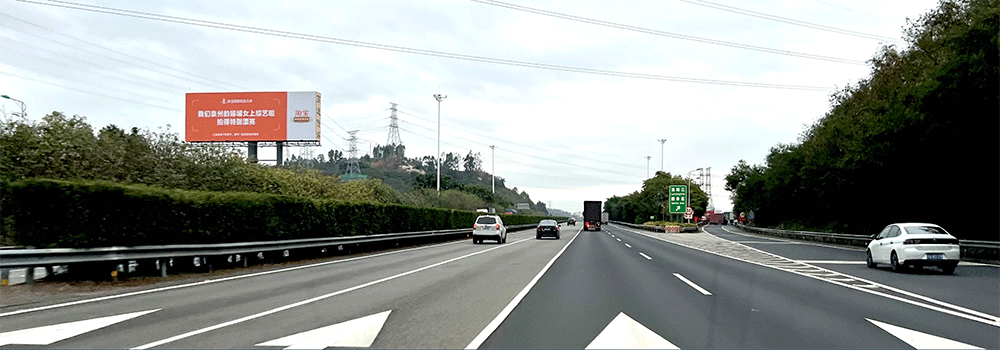 地处泉州西互通旁A道,无任何视觉遮挡,独立醒目,主线与收费站多方向视觉效果,可视有效距离超过1000米。