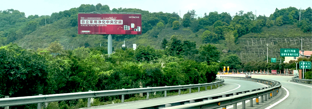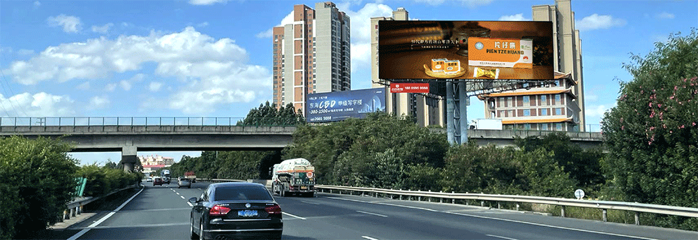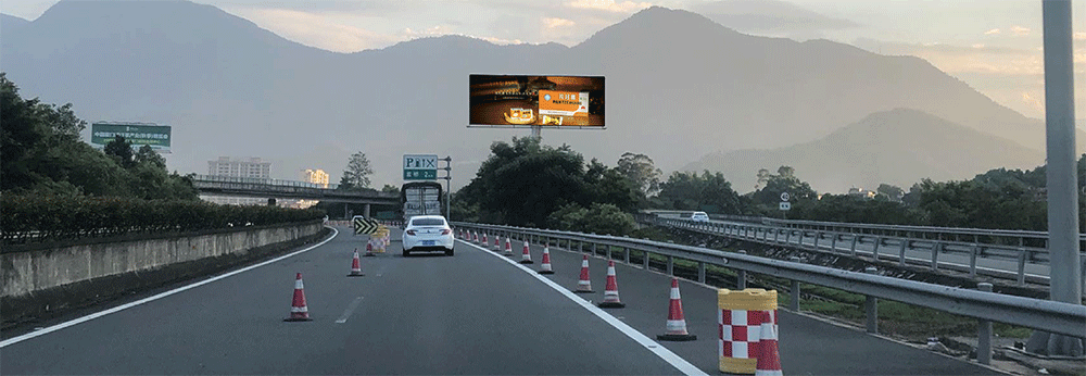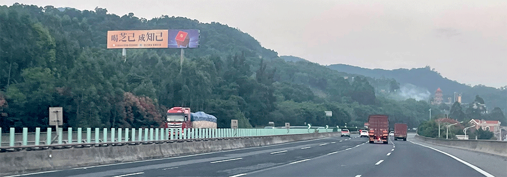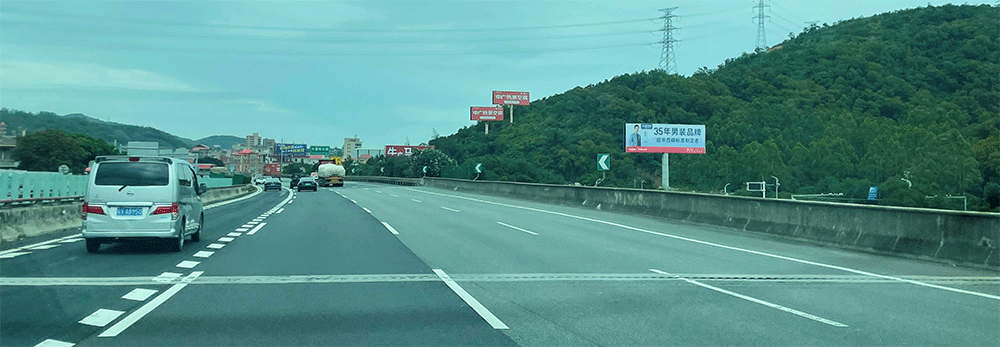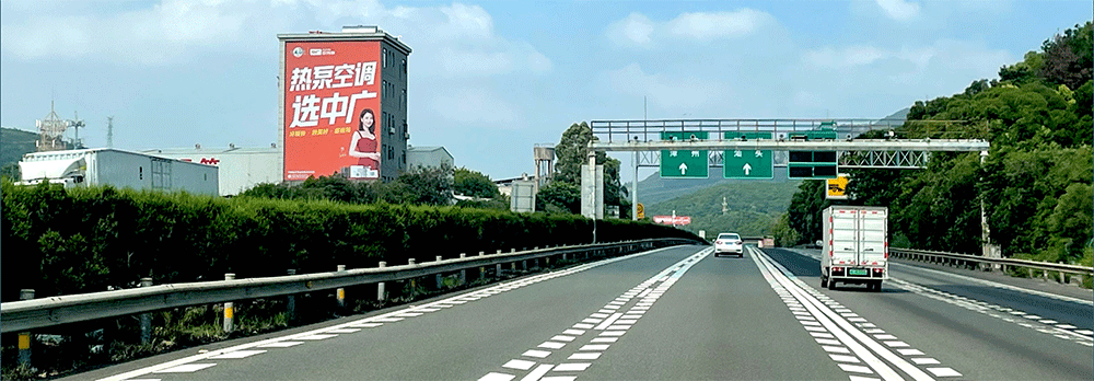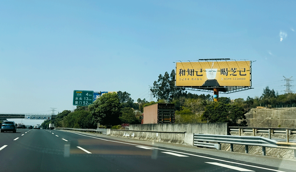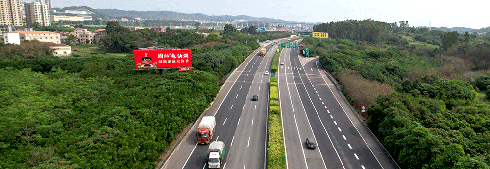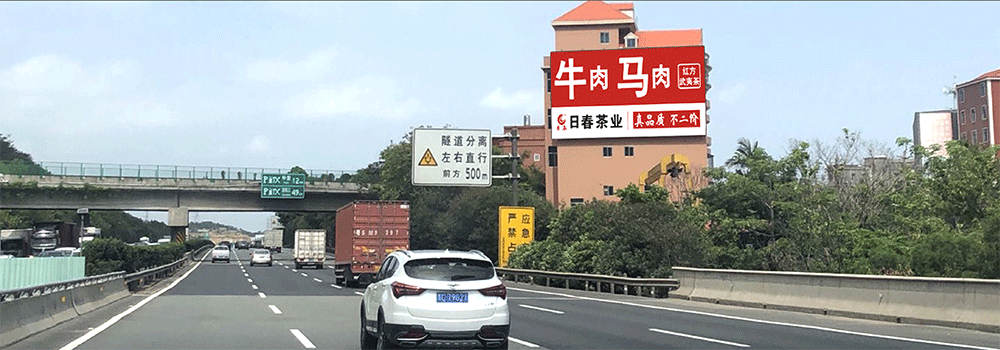 地处泉州西互通旁A道,无任何视觉遮挡,独立醒目,主线与收费站多方向视觉效果,可视有效距离超过1000米。