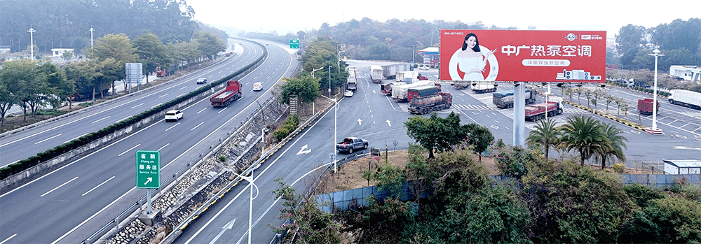 地处南安省新枢纽绿化带,无任何视觉遮挡,独立醒目,主线与收费站多方向视觉效果,可视有效距离超过1000米;