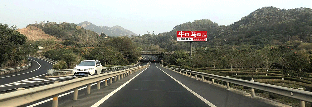 地处诏安南互通绿化带,无任何视觉遮挡,独立醒目,主线及收费站出入多方向视觉效果,可视有效距离超过1000米。