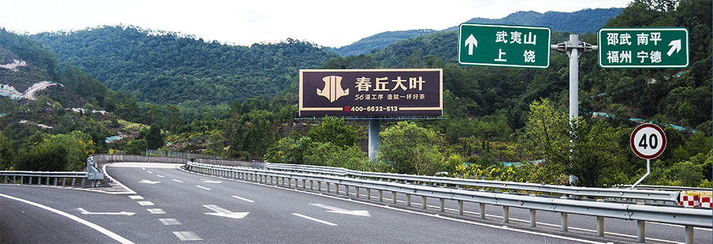 位置唯一性,南平方向至延平北互通100公里、武夷山方向至九曲互通25公里、浦城方向全线无任何正规广告牌。