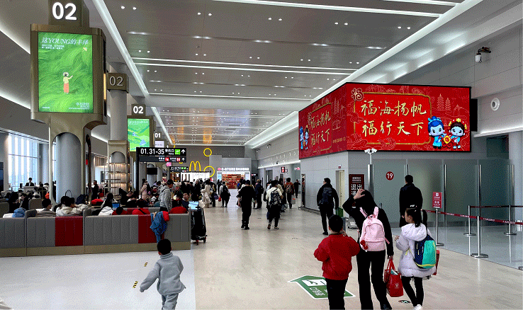 媒体位置1:泉州市晋江机场-国内出发-1楼值机通道上方墙面