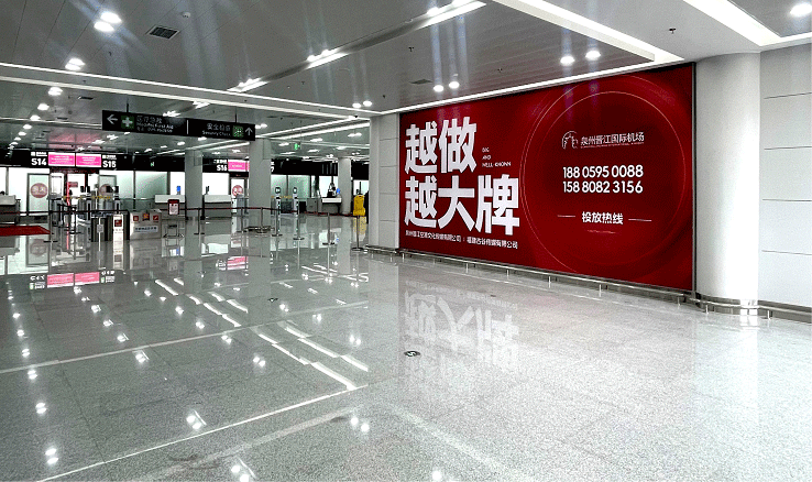 媒体位置5:泉州晋江国际机场-国内出发-2楼出右扶梯对面墙面